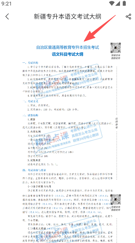 3、进入考试大纲详情页,查看对应科目的考试内容。