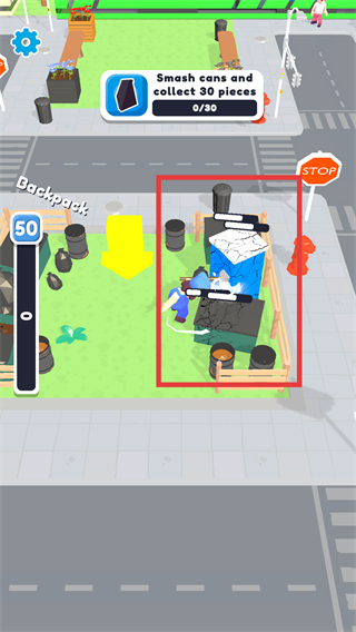 1、进入关卡后,目标为粉碎罐头收集30个碎片,跟随箭头指引前往罐头区。