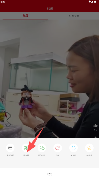 3、在弹出的分享面板中选择“朋友圈”进行分享。