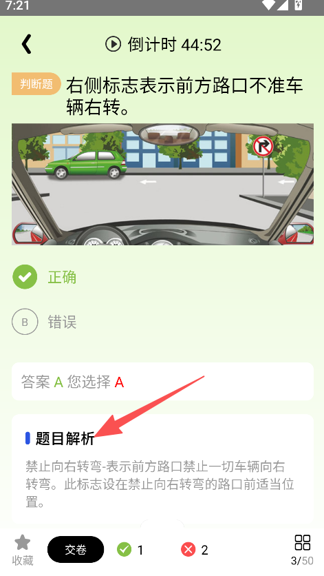 3、具备题目解析功能,答题完成后查看对应题目的解析,掌握题目涉及的驾照理论知识点。