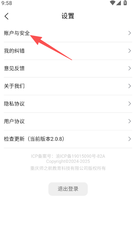 3、在账户与安全页面,选择修改密码或账号注销完成对应操作。