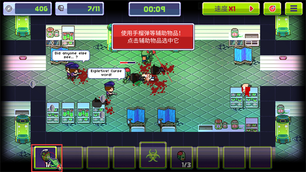 4、遇到人类抵抗时点击辅助物品栏中的手榴弹等道具,选中后使用可快速清除障碍加速感染进度。
