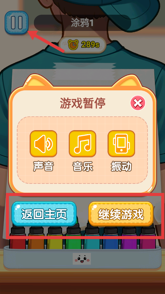 4、若需暂停,点击左上角暂停按钮,可选择“返回主页”或“继续游戏”。