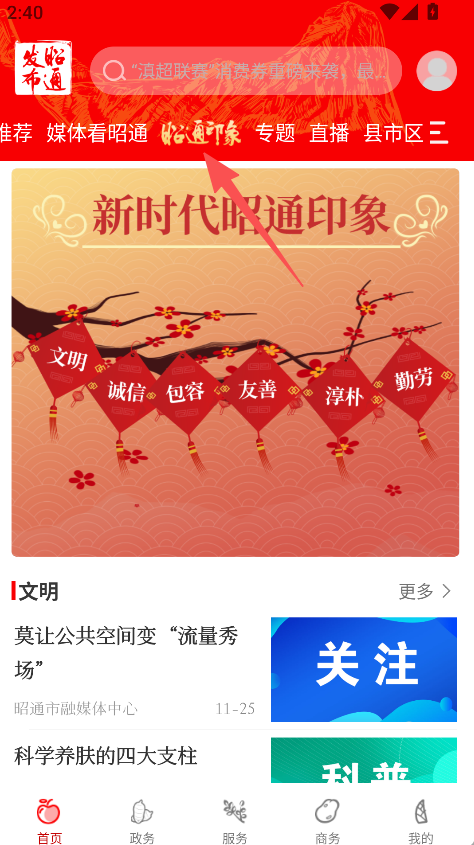 1、聚焦昭通本地内容,设置昭通印象、文明等板块,呈现新时代昭通主题内容及本地各类资讯。