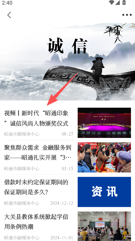 2、在昭通印象页面选择目标内容,查看相关视频或资讯详情。