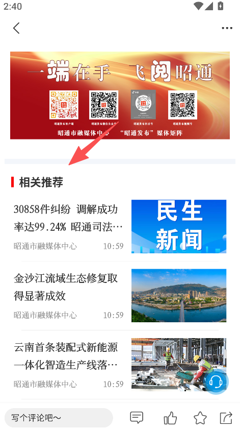 3、浏览详情页后,查看相关推荐板块的本地资讯内容。