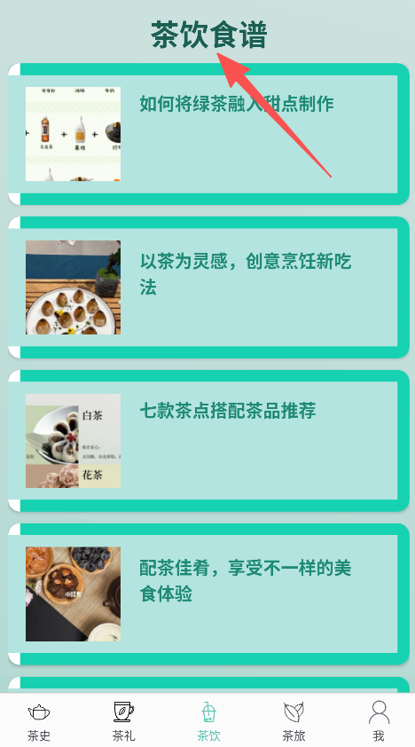 2、在茶饮食谱中选择目标内容,进入对应详情界面。