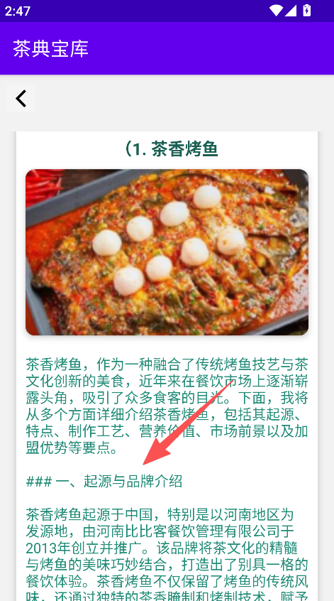 2、具备茶食详情查看功能,点击对应内容可了解菜品的起源、制作工艺等信息。