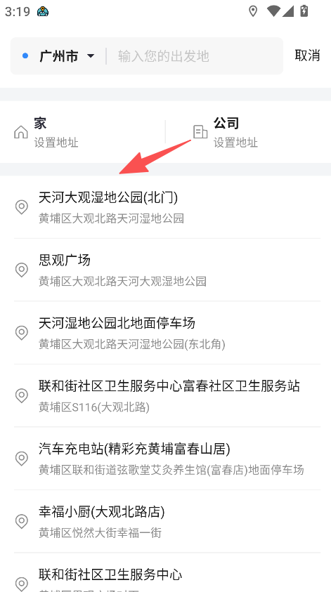 2、具备出发地输入功能,可在对应区域填写或选择已有地点作为本次出行的出发位置。