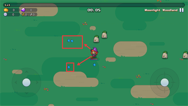 1、关卡中操控女巫移动至被框选的钻石区域,收集场景内的钻石资源,同时避开怪物,积累生存时间与物资。