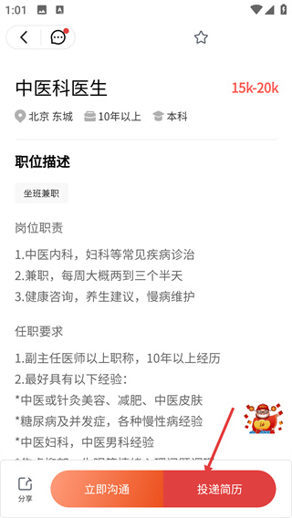 4、在职位详情页点击【投递简历】按钮,完成该岗位的简历投递操作,推进求职流程。