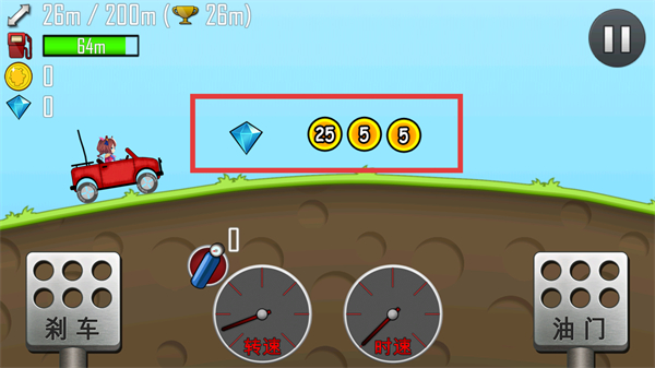 3、行驶过程中收集红框内的【钻石】【金币】,积累资源同时向200米目标距离推进。