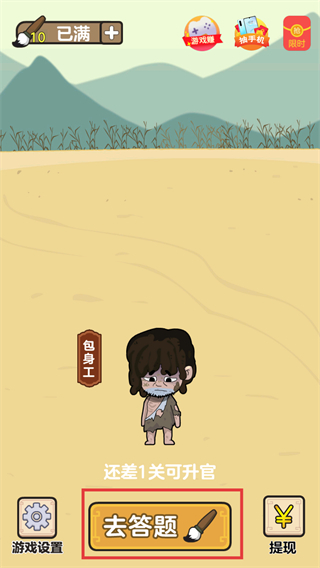 1、当前身份为【包身工】,点击【去答题】进入关卡,开启成语游戏挑战。