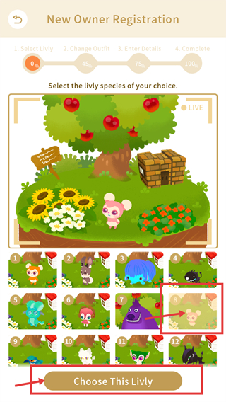 2、在“Select-Lively”环节,选择被框选的物种,点击【Choose-This-Lively】按钮,确定所选角色推进创建流程。