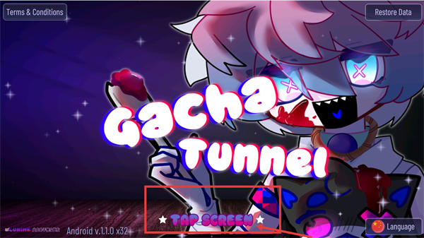 1、在【Gacha-Tunnel】界面,点击被框选的【Tap-Screen】区域,进入游戏主界面,开启角色相关的养成流程。