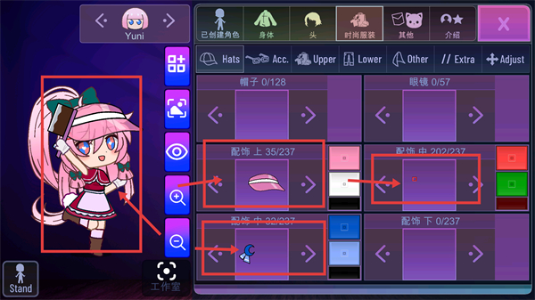4、切换到配饰界面,选择被框选的配饰(如配饰-上-35/237),为角色添加装饰,完成外观的个性化定制。