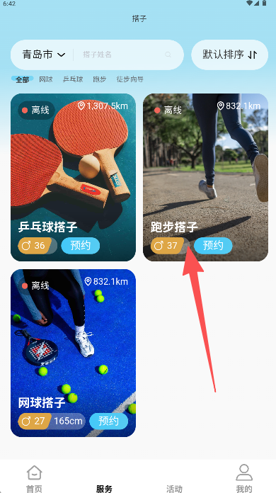 2、在搭子页并选择“跑步搭子”进入预约界面。