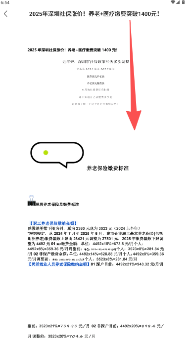 2、选择目标文章如“2025年深圳社保涨价”查看详细政策。