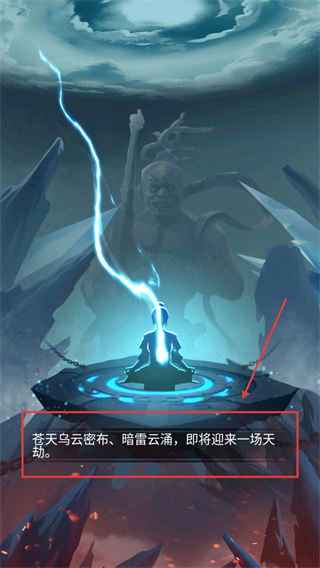 1、画面出现乌云暗雷时,需提前积累充足灵气,准备迎接天劫,这是突破境界的关键步骤助力后续渡劫成功。