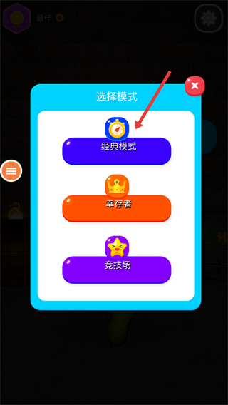 2、点击【开始】后会弹出【选择模式】弹窗,可从【经典模式】【幸存者】【竞技场】中选择对应模式开启玩法。