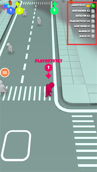 超级人群城市是一款以人群集结与策略对抗为核心的休闲益智工具,玩家将在动态生成的城市场景中从单人队伍起步,通过不断吸纳散落各处的无阵营角色来壮大自身队伍规模。队伍人数是决定对抗胜负的关键因素,每位玩家的队伍都拥有专属标识颜色,使追随者能在视觉上清晰区分敌我归属。游戏操作极为简洁,仅需使用虚拟摇杆控制领队角色的移动方向,引导身后人群穿梭于地铁站、摩天楼顶等丰富主题关卡。