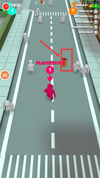 4、游戏过程中关注【01:26】计时,靠近场景内的【礼物】道具获取奖励,同时避开其他角色的干扰。