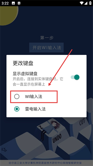 3、完成开启后,进行第二步【选择WI输入法】的操作,进入输入法选择界面。