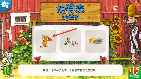 1、在初始界面选择箭头所指【袋鼠发明项】,进入该发明的组装关卡。