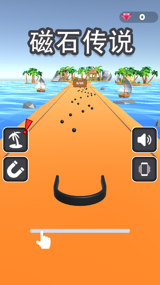 1、打开游戏,滑动屏幕控制磁铁移动,吸附金属颗粒。