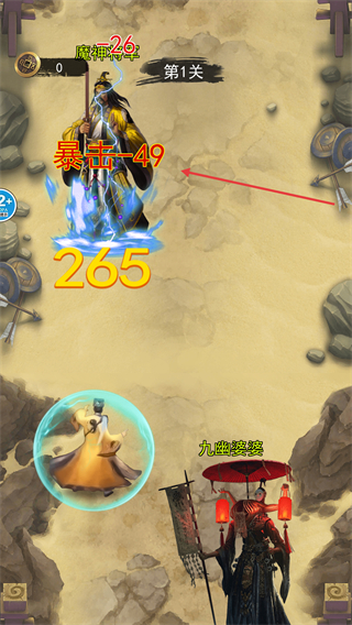 3、战斗中触发暴击可造成更高伤害,如对【魔神将军】打出暴击能快速削减其血量推进关卡。