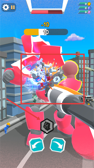 3、持续攻击敌方机甲,当其出现【-10】血量扣除特效时,继续输出可快速击破目标完成战斗。