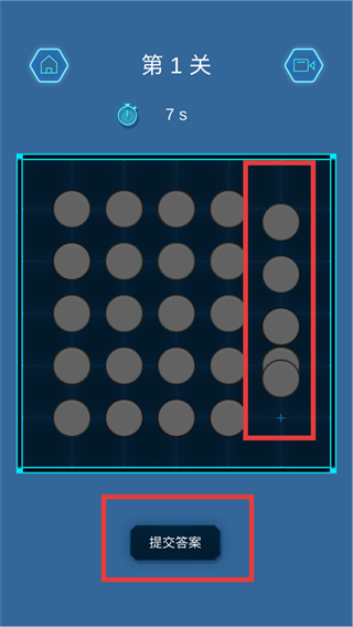 2、进入关卡后,按照记忆里的位置,把分散的黄色球向目标区域移动,对齐成连续的一排呀。