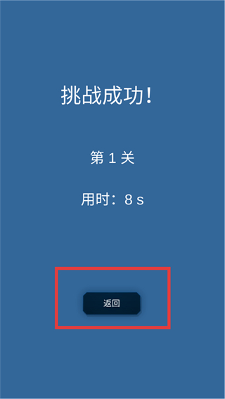 4、看到【挑战成功!】的提示后,点【返回】按钮回到关卡选择界面,准备挑战下一关哦。
