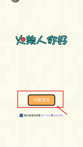 1、进入【火柴人你好】界面,再点击红框内的【开始游戏】按钮,即可进入游戏的关卡环节。
