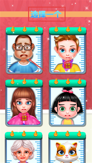 2、多元患者角色涵盖不同年龄与外形,除男孩、女孩外,还有各具特色的可爱形象,满足孩子的角色选择偏好。