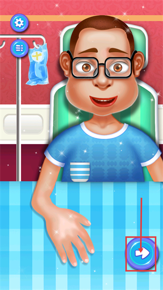 4、治疗完成后角色状态恢复良好,此时点击界面中的【箭头按钮】,即可推进到下一个流程或完成本次治疗关卡。