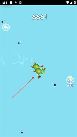 3、控制【乌龟】角色避开黑色障碍物,利用【无敌】状态安全移动,稳步提升进化等级。
