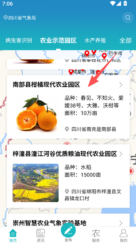 1、打开四川e农,点击农业示范园区板块进入对应页面。