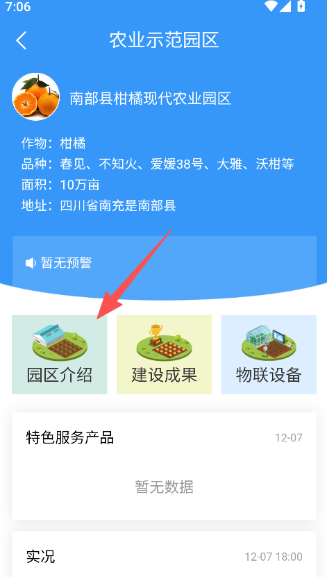 3、在详情页点击园区介绍,查看对应的农业园区信息。