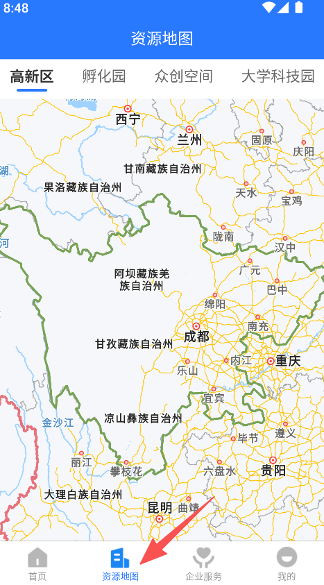 2、支持资源地图功能,进入对应板块,查看多类别资源的区域分布情况。