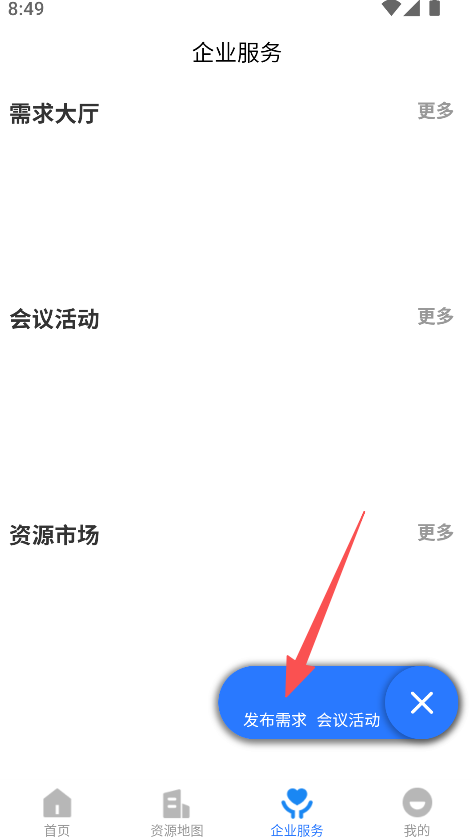 3、点击企业服务板块,使用发布需求功能推进事务。