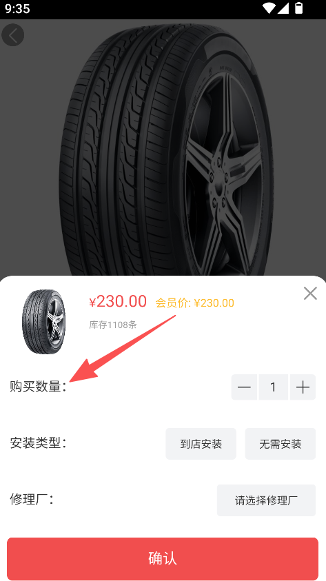 2、采购操作流程简洁,从商品选择到数量、安装类型设置,步骤明确,降低车主采购的操作门槛。