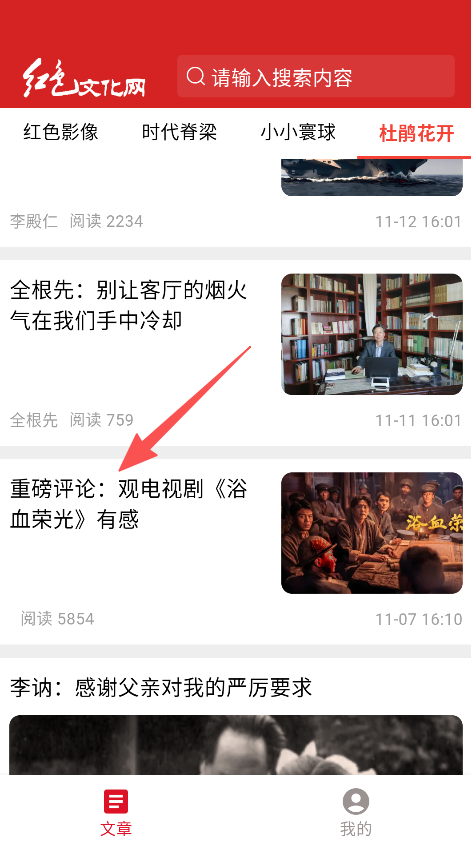 2、在页面选择目标文章板块,查看展示的红色文化文章内容。