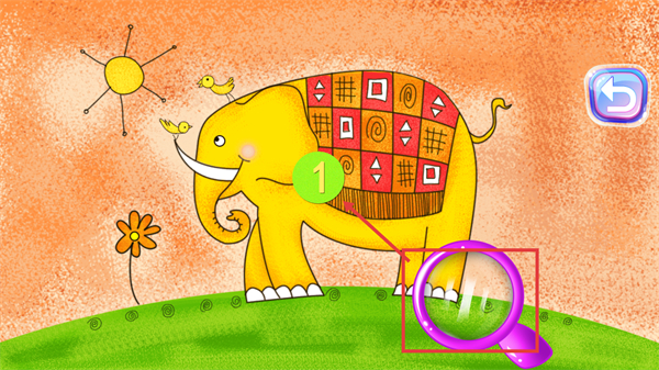 2、进入关卡后,找到红色框选的紫色放大镜,移动它对准界面中的【数字1】,完成数字的定位识别步骤。
