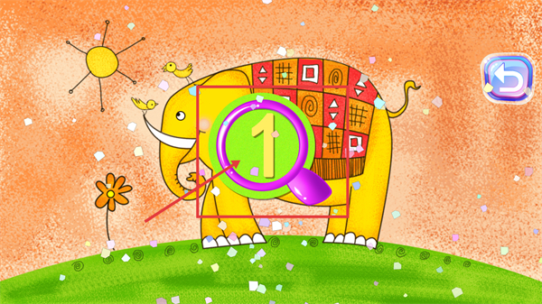 3、将紫色放大镜移至【数字1】位置,触发特效完成该数字的识别,这是数字认知环节的关键操作步骤。
