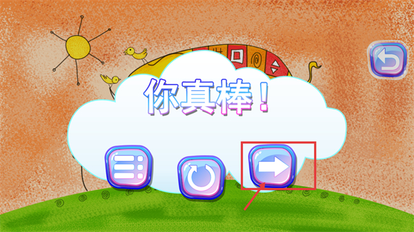 4、完成数字识别后出现【你真棒!】提示,点击红色框选的箭头按钮,即可进入下一个数字的教学关卡。