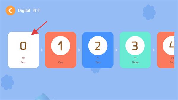 2、进入【数字-Digital】分类页后,找到并点击【0-零-Zero】卡片,即可进入该数字对应的详情学习页面。