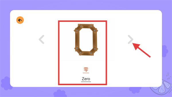 3、处于【0-零-Zero】详情学习页时,点击页面右侧的箭头按钮,能够切换到下一个数字的学习内容页。