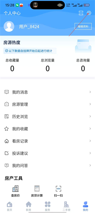 2、在个人中心,点击右上角【设置】图标,进入设置界面。