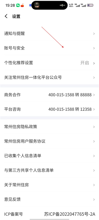 3、在设置页面,选择【账号与安全】选项,进入账号安全管理界面。